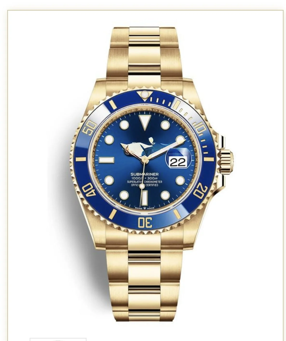 Watches › Submariner all gold Blueface 41 mm box and papers Image 1 of 3 Image 2 of 3 Image 3 of 3 Submariner all gold Blueface 41 mm box and papers $245.00 Add To Cart Added!